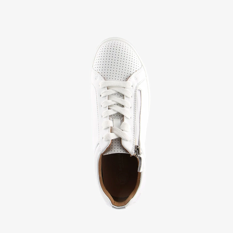 Carissa by Bay Lane is a women’s casual leather sneaker featuring side zip and centre laces with an additional pair of washable insoles for a wider more relaxed fit.