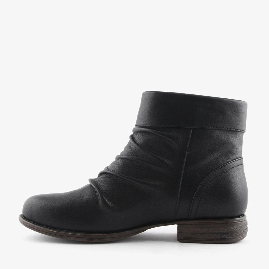 Carlson by Natural Comfort is a smart women’s boot that features a soft leather upper with ruche detailing across the front, functioning side zip and soft microsuede lining.