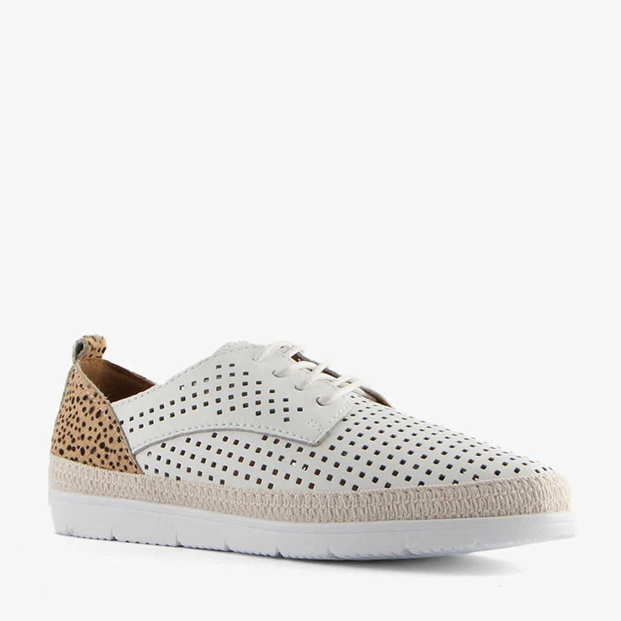 Crope by Cherry is an ultra lightweight women’s sneaker that features a padded removable insole, leopard print heel panel and woven trim around the sole. Crope has a perforated leather upper that allows the foot to breathe making it perfect for everyday wear.