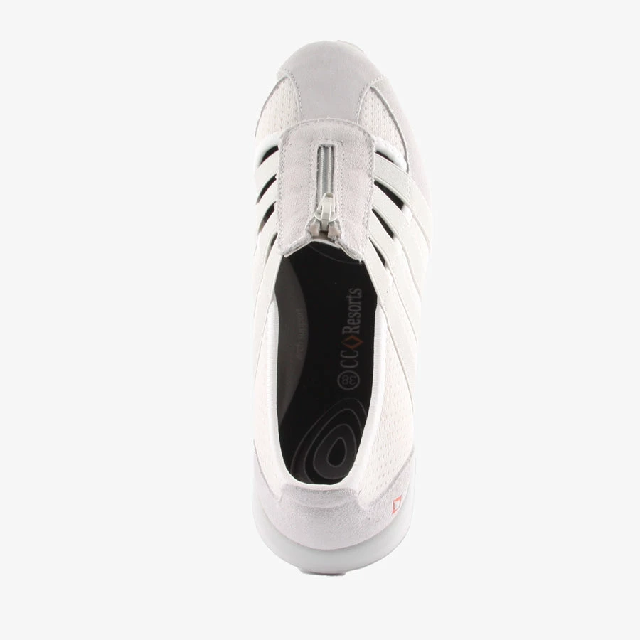 Slip into the sporty leisure style of Christine by CC Resorts. This women’s shoe features a mesh upper with suede and elastic overlays finished with a zip closure and removable padded insole.