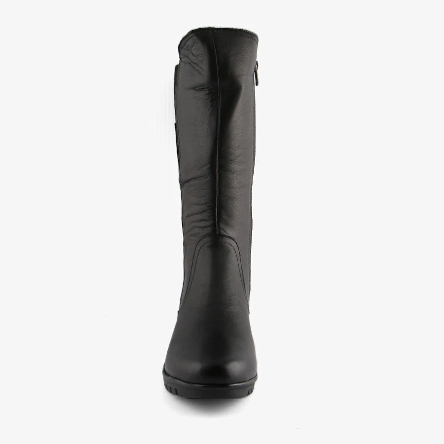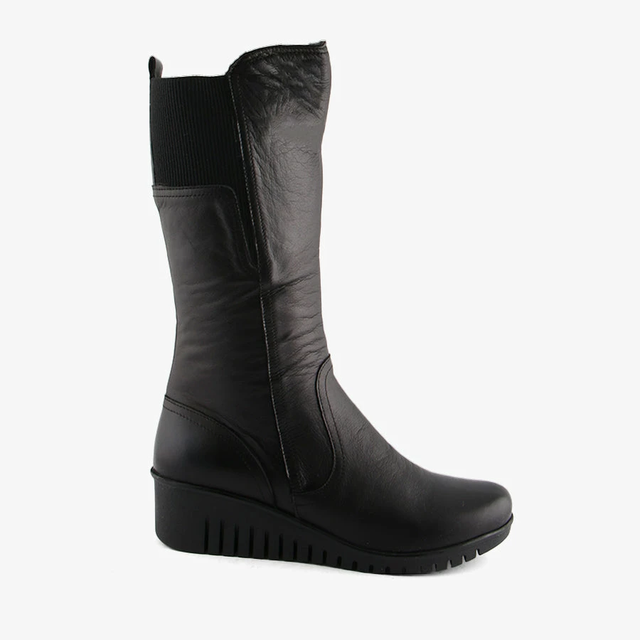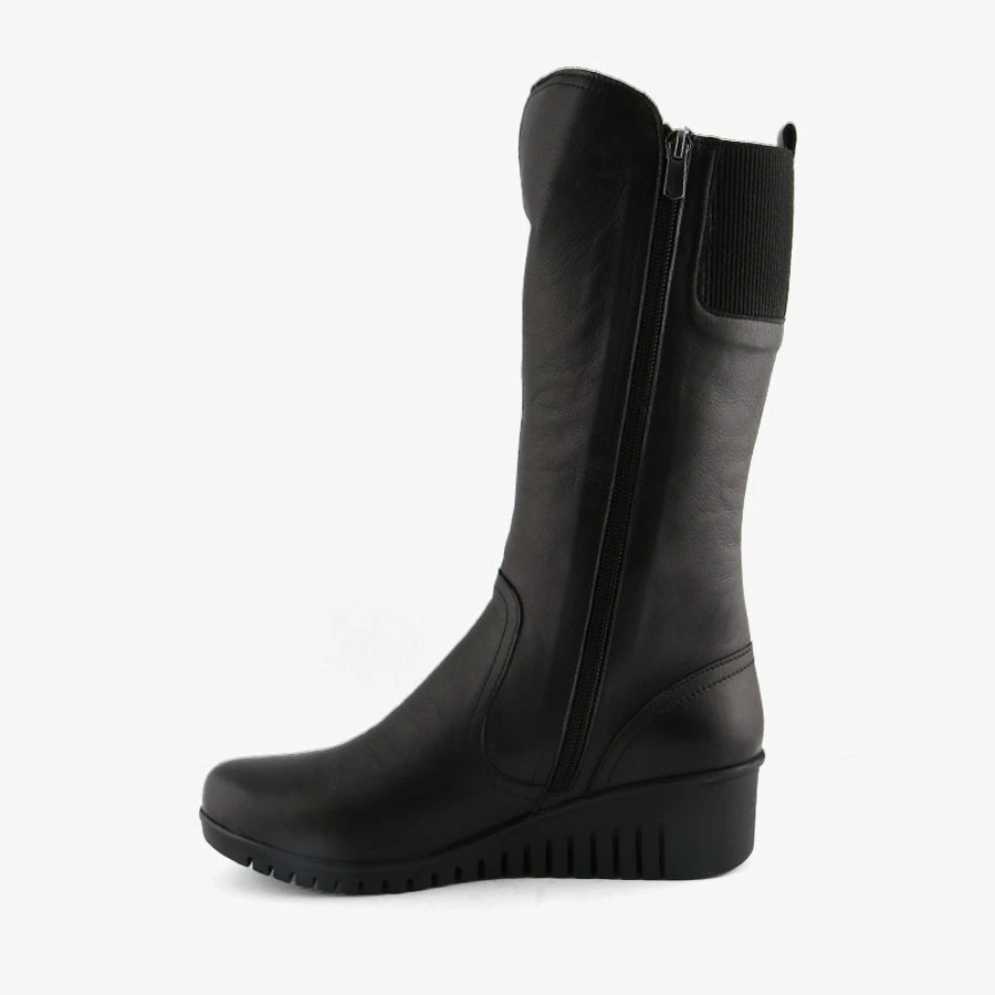 Ernie by Donna Style is a long women’s boot that features a comfortable low wedge, an ultra soft leather upper, full length side zip for easy access and an elastic panel around the calf for the most comfortable fit.