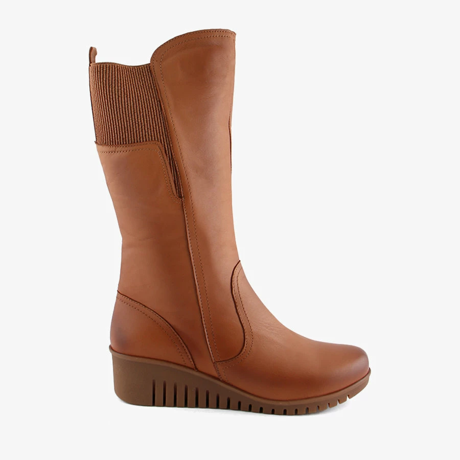 Ernie by Donna Style is a long women’s boot that features a comfortable low wedge, an ultra soft leather upper, full length side zip for easy access and an elastic panel around the calf for the most comfortable fit.