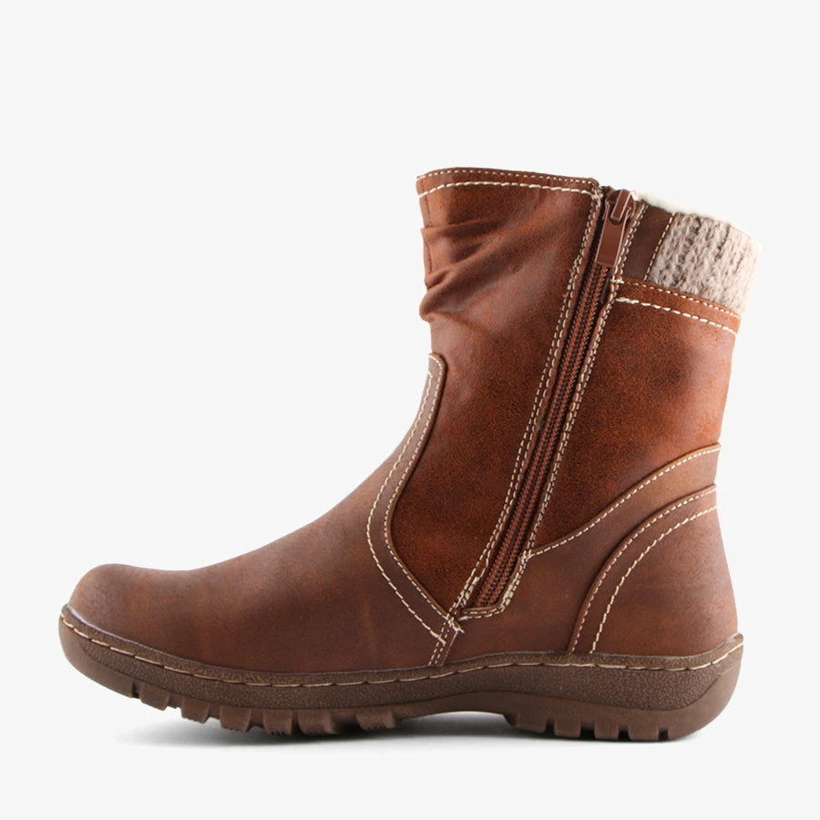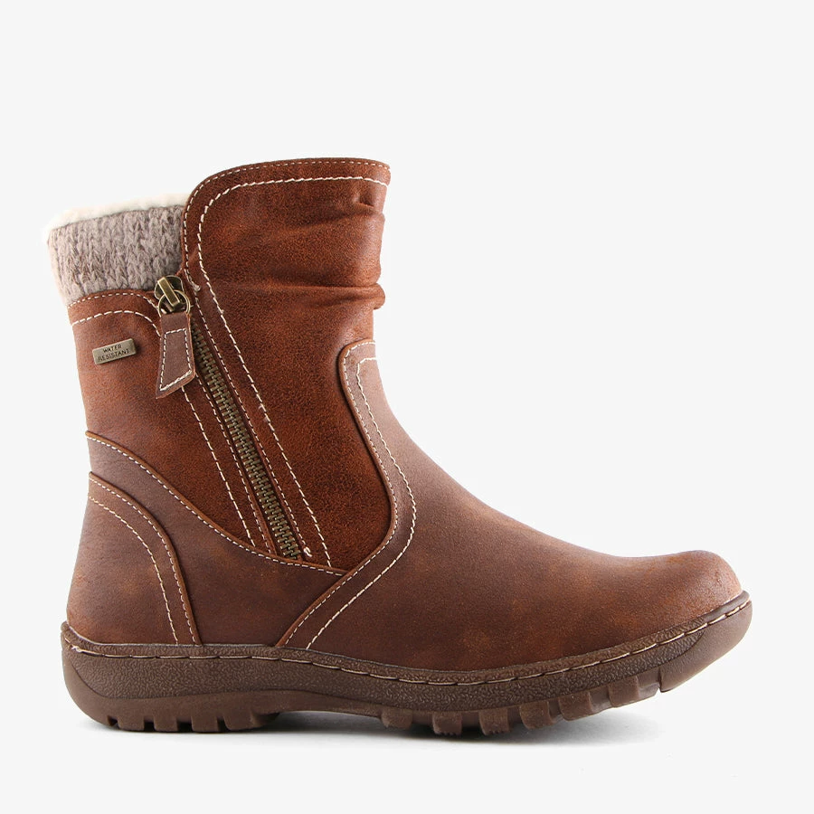 Glenda by CC Resorts is the ultimate Winter boot. Glenda features a water resistant faux leather upper, full length faux fur lining and a decorative outer side zip with a full length functioning inner side zip.