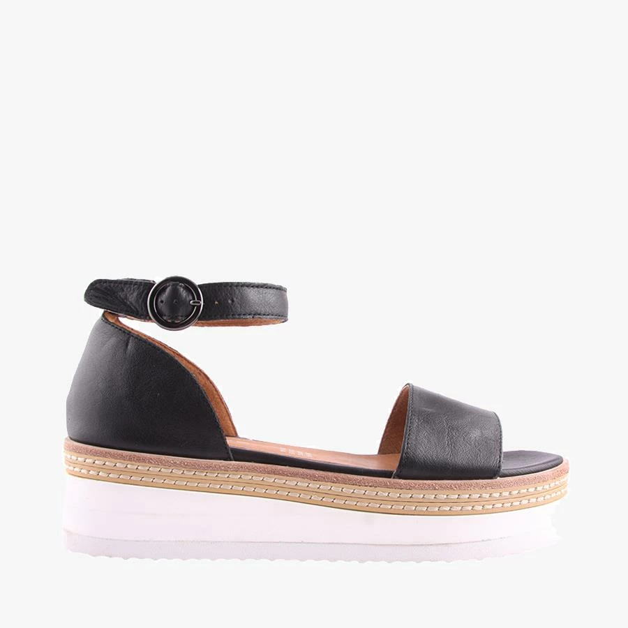 Isla by Alfie and Evie is a women’s leather flatform sandal featuring a soft cushioned sole, forefoot strap and a supportive cuffed heel with buckled ankle strap.