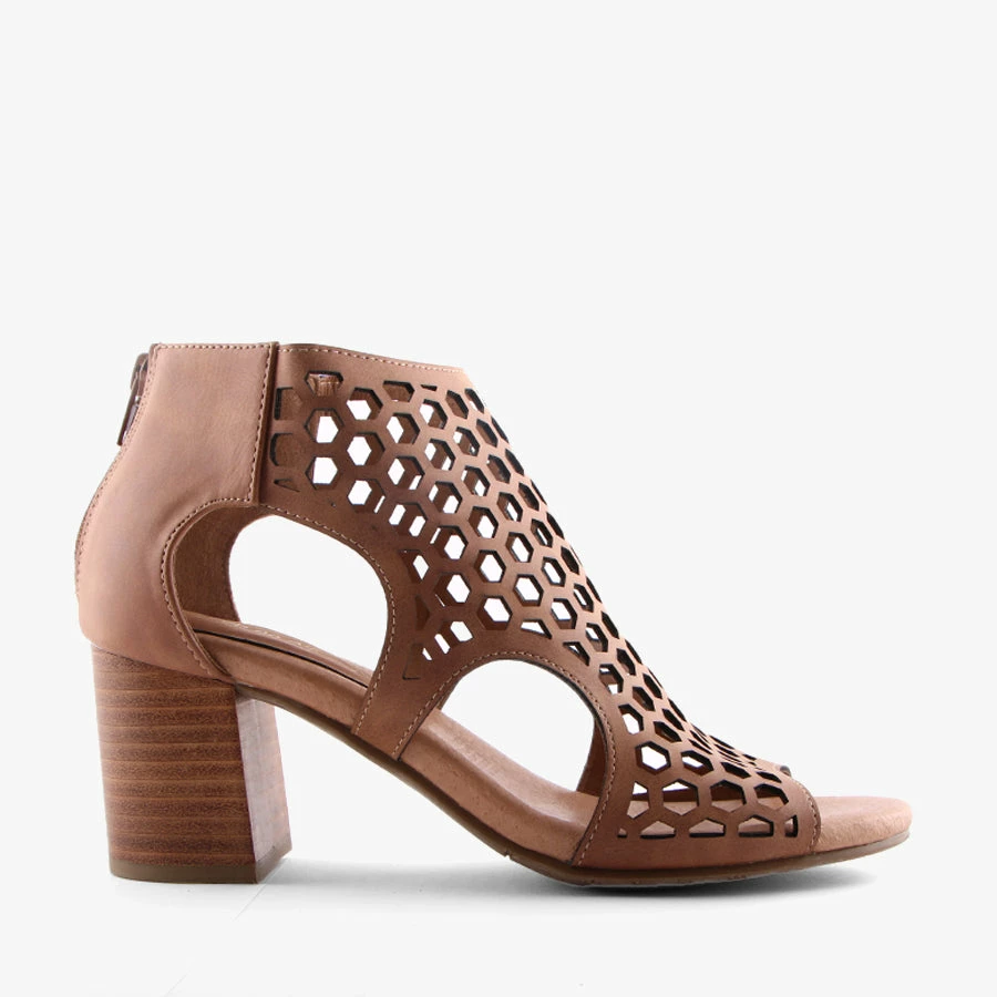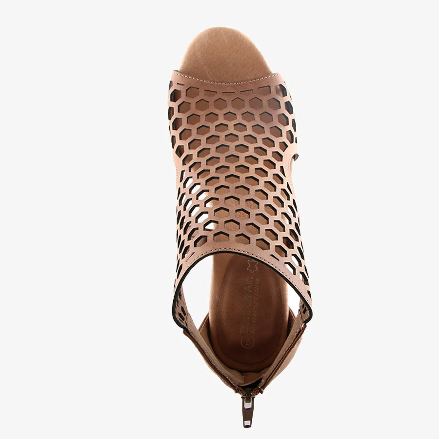 Make a statement with Kage by Step On Air. This women’s sandal features a stacked block heel, back zip for easy entry and a bold lasercut design.