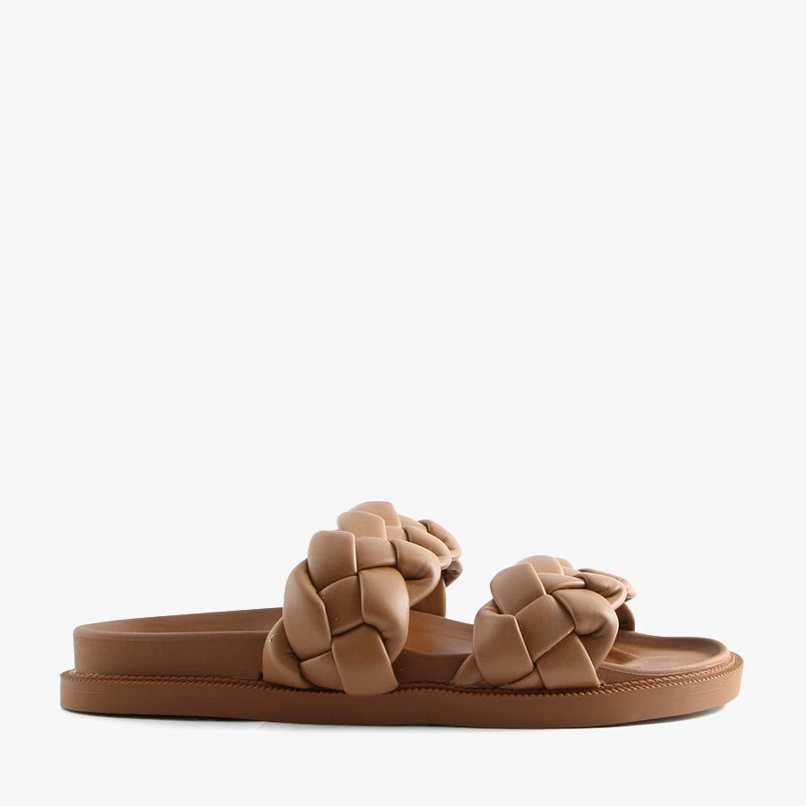Kalee by London Rebel is a chunky slide on sandal featuring a thick comfortable rubber foot bed and a soft thick braided upper.
