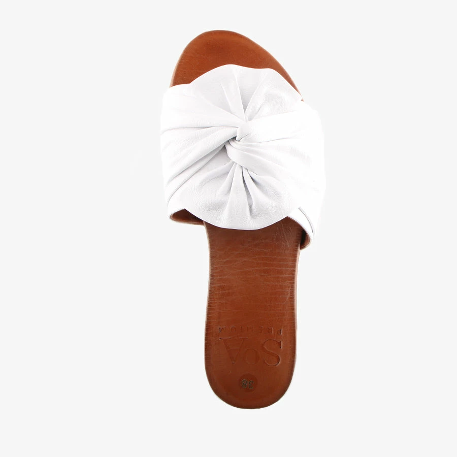 Kiss by Step On Air is a women’s slide sandal that features a soft leather upper with oversized bow detail.