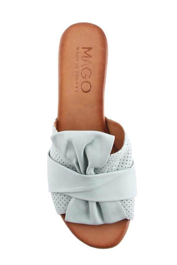 Lazing by Mago is a dressy summer slide. Lazing features a small stacked heel and detailed leather upper. Perfect to dress up or casual wear. Made in Turkey