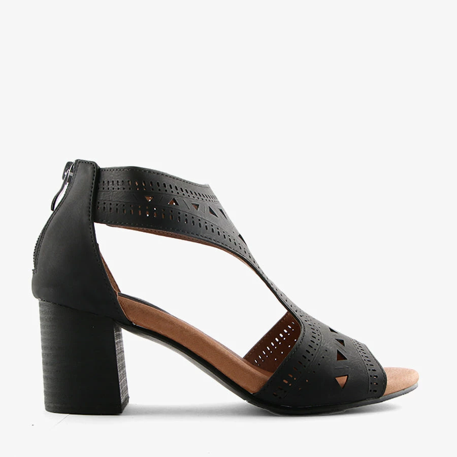 Make a statement with Lils by Step On Air. This women’s sandal features a stacked block heel, back zip for easy entry and a bold lasercut design.