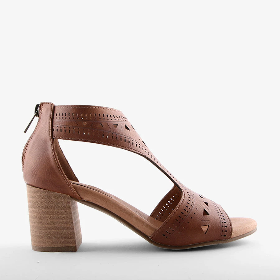 Make a statement with Lils by Step On Air. This women’s sandal features a stacked block heel, back zip for easy entry and a bold lasercut design.
