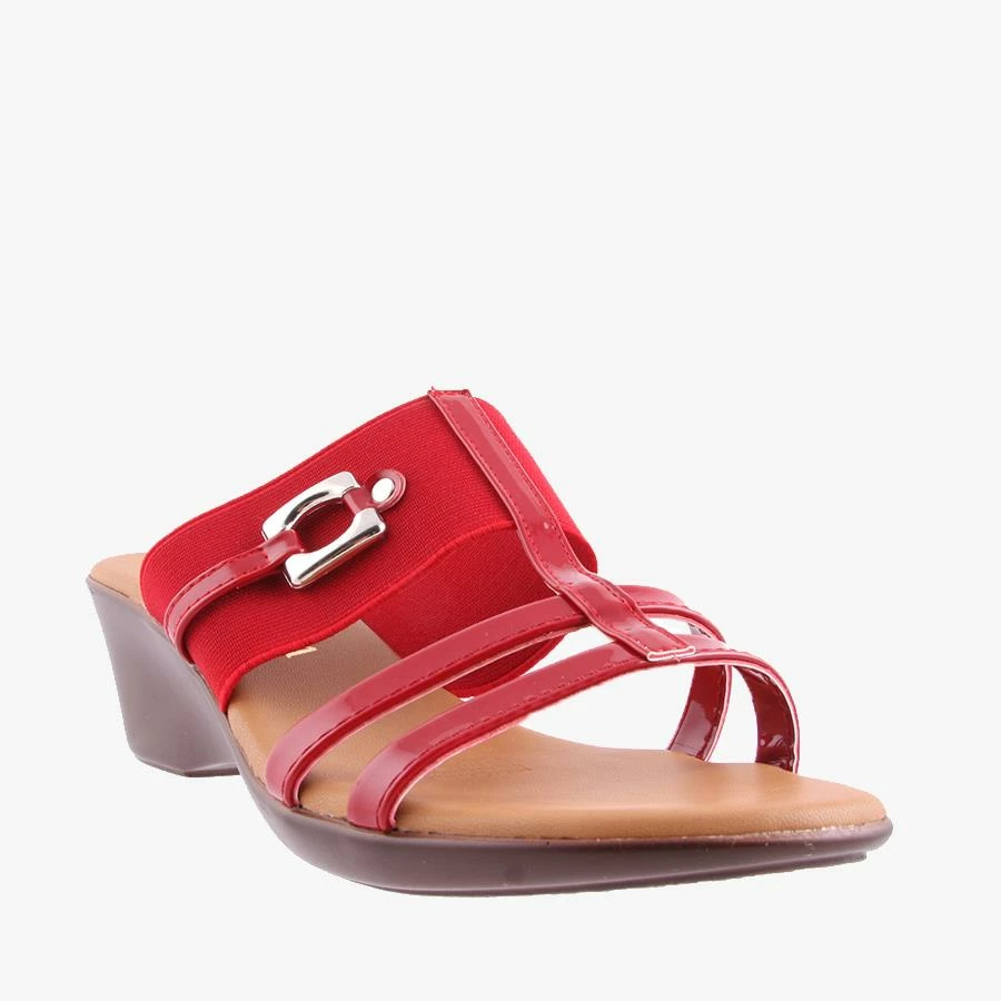 Maid by Barletta is a women’s wedge sandal featuring a padded sole and a wide elastic top strap for a comfortable fit.