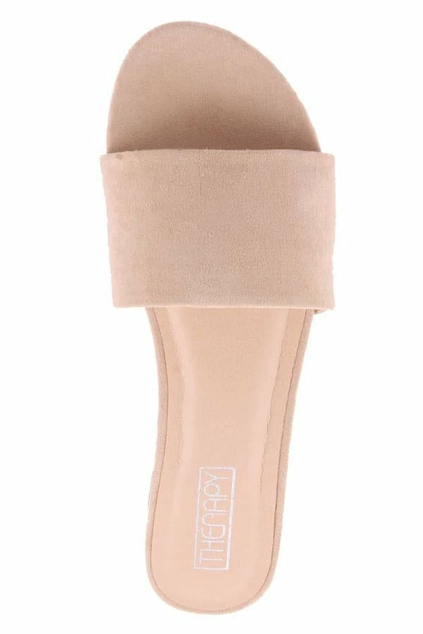Slide into Maise by Therapy. This women’s sandal features a microsuede upper with a lightly padded insole and slight heel.
