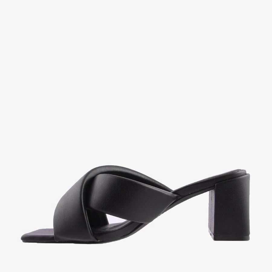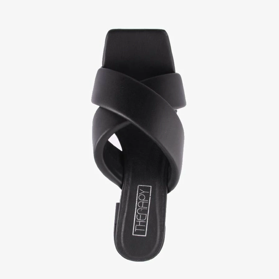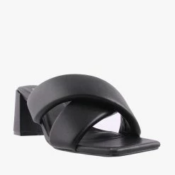 Mary- Kate by Therapy is a women’s slip on heel that is the perfect balance between fashion and comfort, featuring a puffy cross over strap with a square toe detail and square block heel.