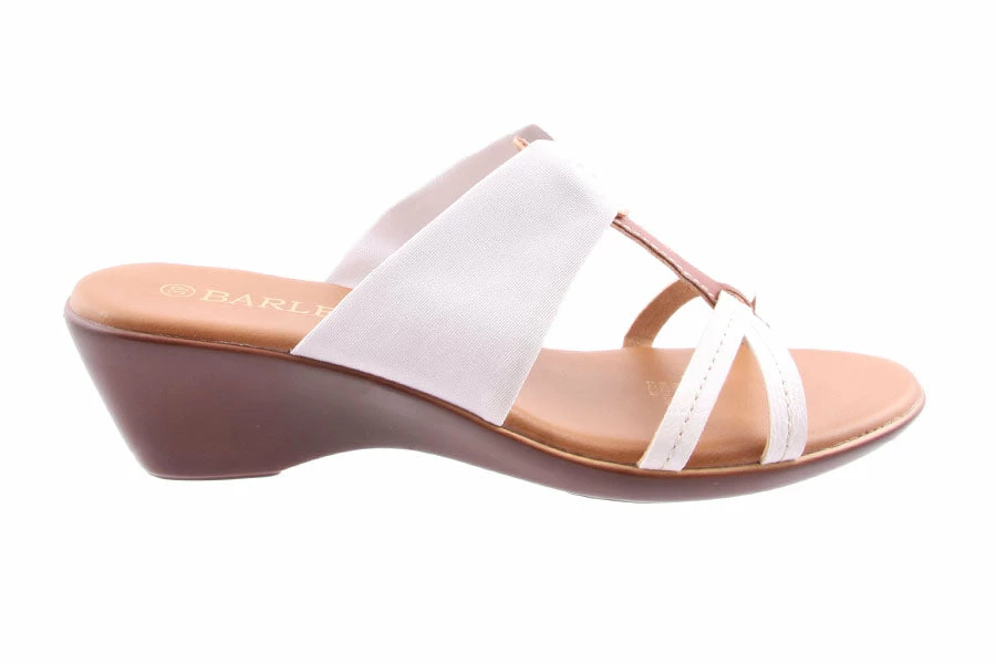 Matera by Barletta is a women’s wedge sandal featuring a padded sole and a wide elastic top strap for a comfortable fit.