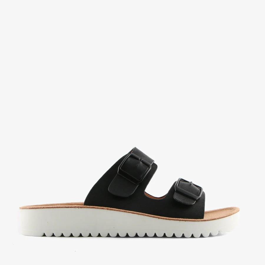 Meg by Bellissimo is a modern casual slide featuring a buckle design and microsuede insole. Meg’s lightweight design and deep footbed will have you feeling like you are walking barefoot