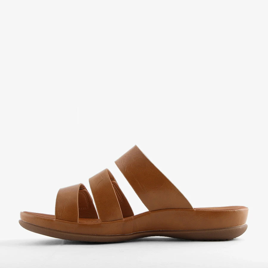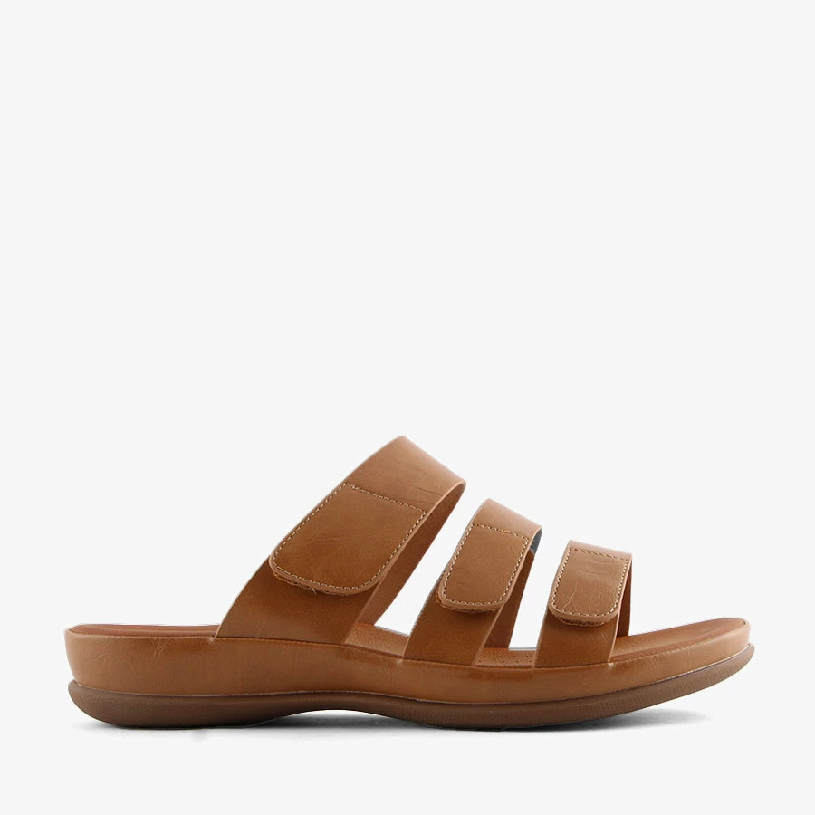 Mumba by Aerocushion is a women’s slide sandal that features a soft padded sole, three adjustable velcro straps and a smart leather-look upper.