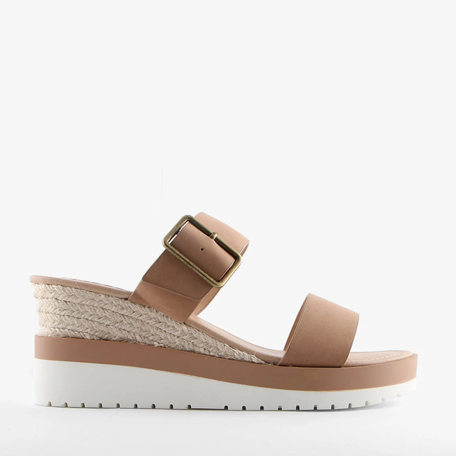 Olly by Pied A Terre is a lightweight wedge that features an adjustable buckle strap and espadrille trim to complete your Summer look.