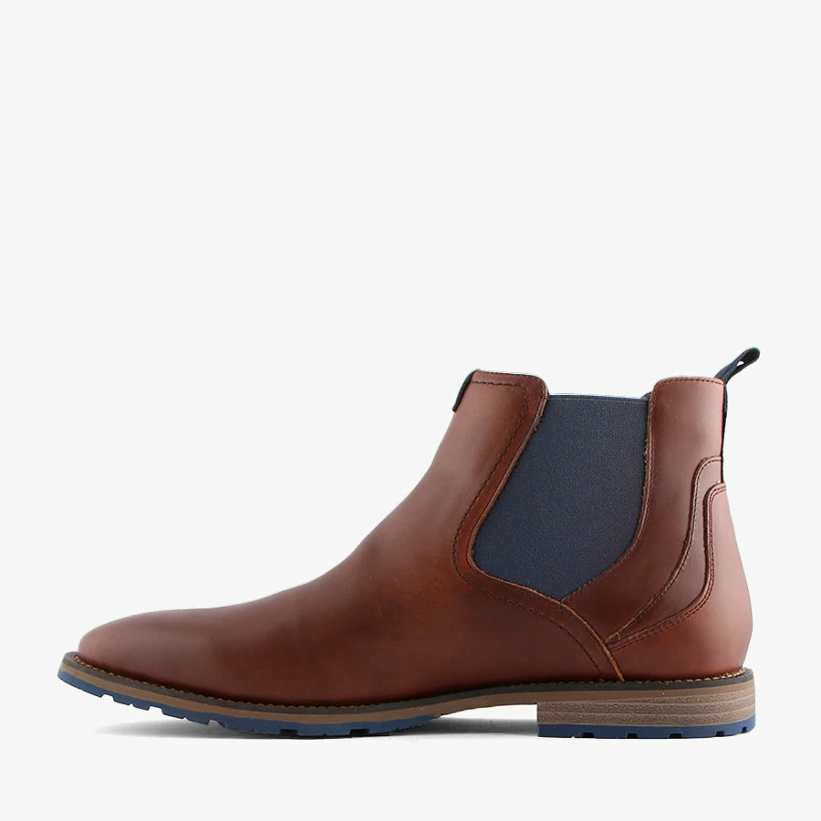 Reform by Julius Marlow is a men’s elastic sided dress boot that features a padded removable memory foam insole. Reform’s smart and sophisticated two tone pairs easily with jeans, pants and suits.