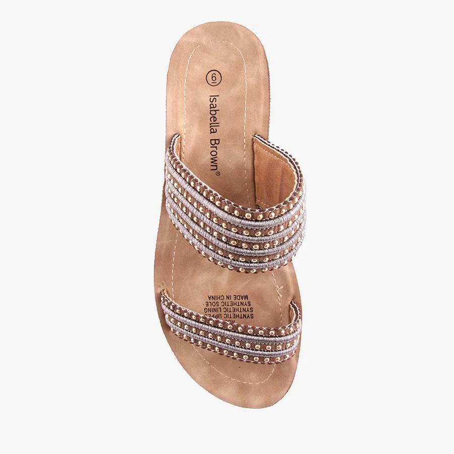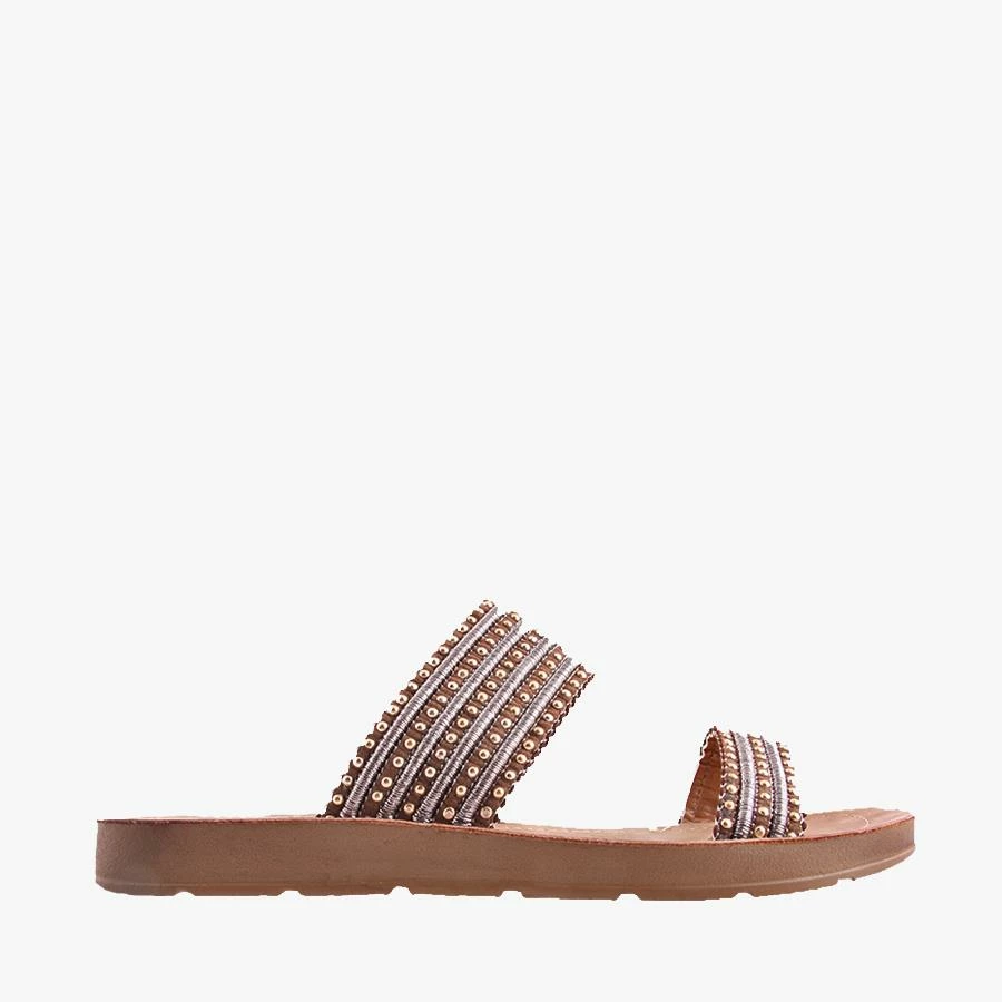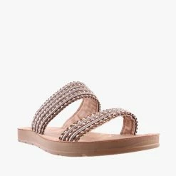 Rosie by Isabella Brown is a women’s sandal that features a comfortable flat sole and embellished dual straps.