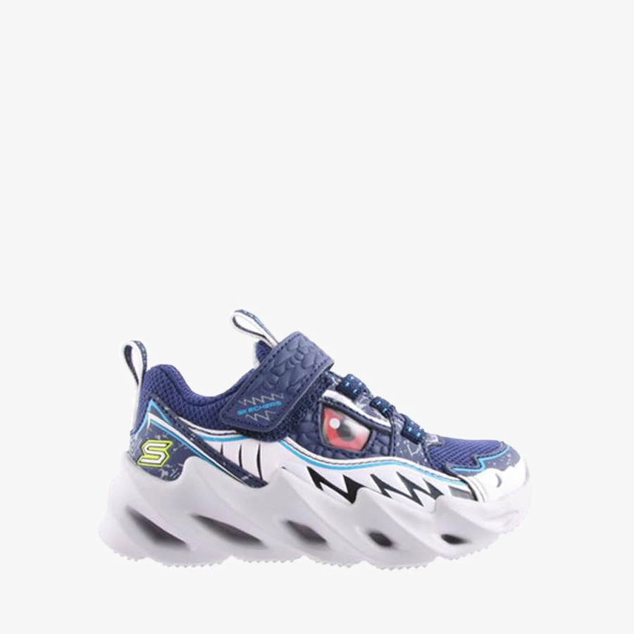 SB- SURF PATROL by Skechers is a cool new Shark Bots infants sneaker that features an ultra lightweight sole, breathable mesh upper and velcro strap closure with elastic bungee laces. This style are machine washable.