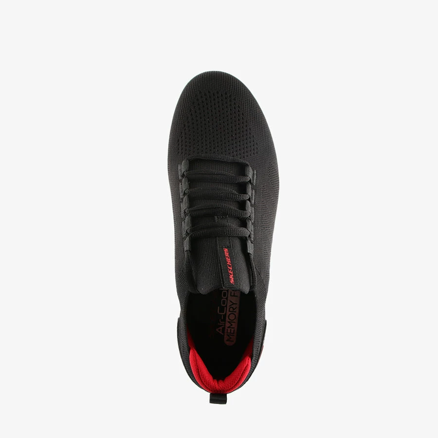 Skech Lite Pro Faint Flair by Skechers is a men’s lace up sneaker that features an air cooled memory foam insole, a breathable textile stretch fit upper and a padded collar for extra comfort. A vegan and machine washable design.