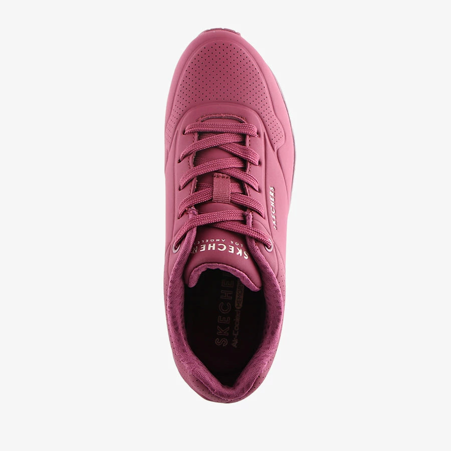 Uno – Stand On Air by Skechers is where comfort meets fashion. Uno is a woman’s sneaker that features a padded collar and tongue, perforated details on the toe and collar with embossed accents on the heel and tongue. With an air cooled memory foam insole and an air cushioned shock absorbing heel pad you will be comfortable all day in Uno – Stand On Air.