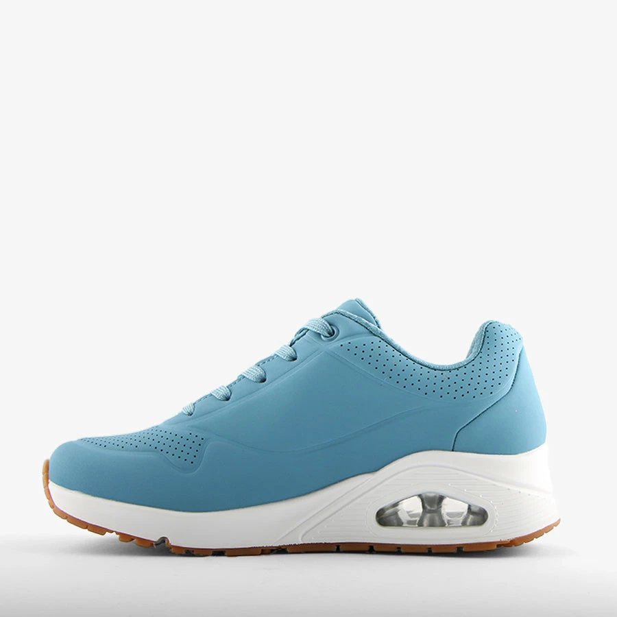 Uno – Stand On Air by Skechers is where comfort meets fashion. Uno is a woman’s sneaker that features a padded collar and tongue, perforated details on the toe and collar with embossed accents on the heel and tongue. With an air cooled memory foam insole and an air cushioned shock absorbing heel pad you will be comfortable all day in Uno – Stand On Air.